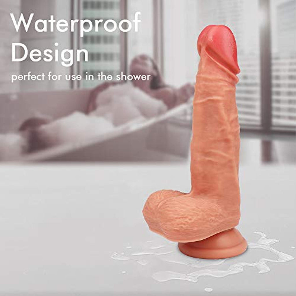 ♥ ULTRA-REALISTIC TEXTURE - Liquid silicone dildo with a firm inner side and a soft outer. It’s flexible and bendable with the vividly simulated glans, realistic testicles, and exquisite vein, just feels like a real penis!